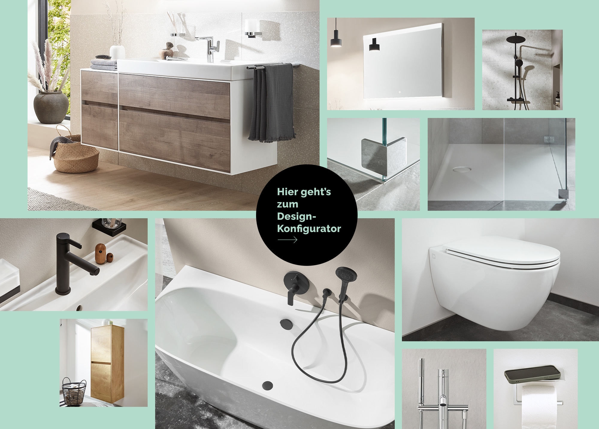 Gestalte dein Bad so, wie es zu deinem Leben passt – der Design-Konfigurator bietet dir dafür die perfekte Orientierung. Wähle in wenigen Schritten die Grundausstattung, die in deinem Bad nicht fehlen darf und erhalte anschließend eine Collage mit deinen Lieblingsstücken.