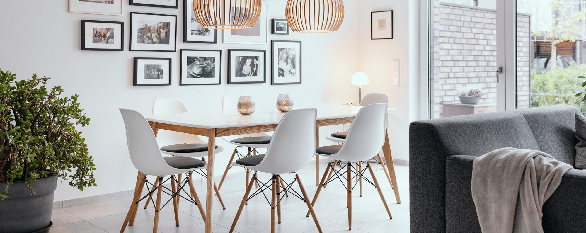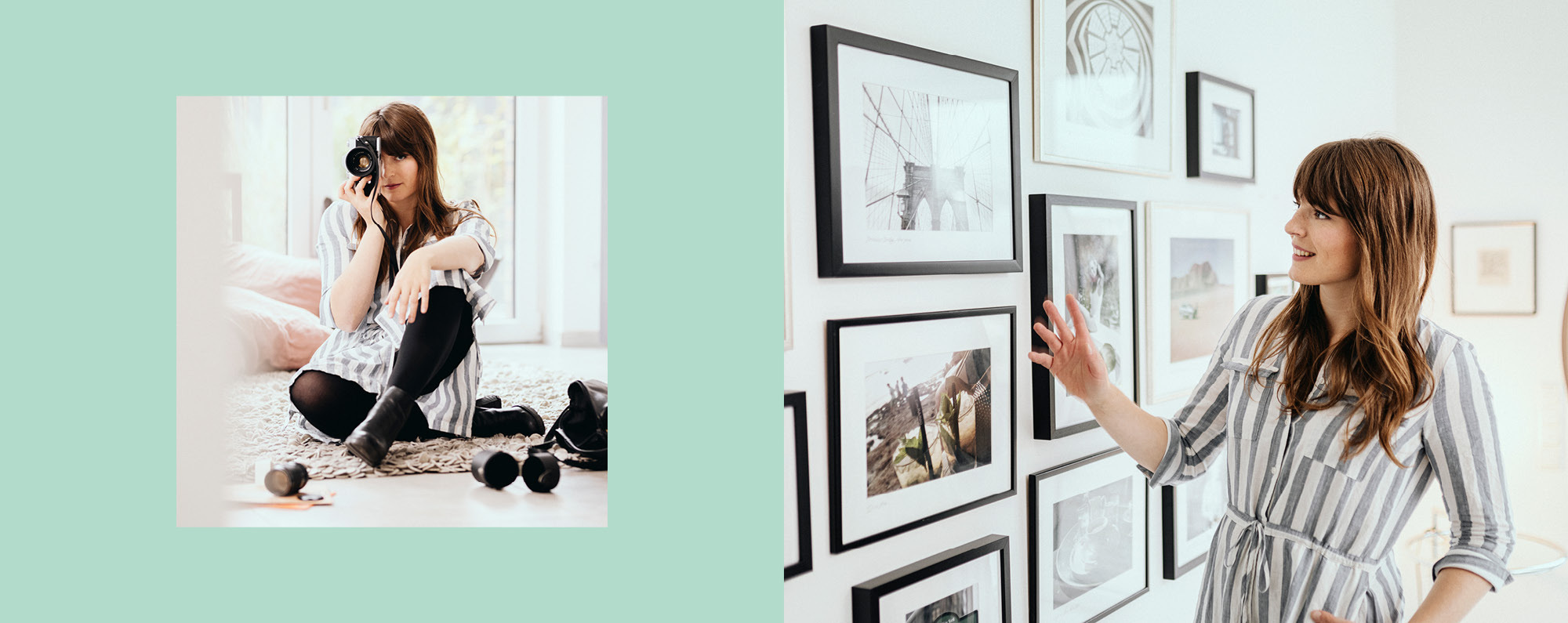 Schon beim Betreten der Wohnung fällt der stimmige Mix aus hellen und dunklen Farben in Kombination mit farbenfrohen Accessoires auf. Die skandinavisch inspirierte Einrichtung bringt dabei die offene Atmosphäre der großen, lichtdurchfluteten Räume ideal zur Geltung. Tara ist Hobbyfotografin und ihre eigenen, aber auch die Werke anderer Künstlerinnen und Künstler finden sich in der gesamten Wohnung.