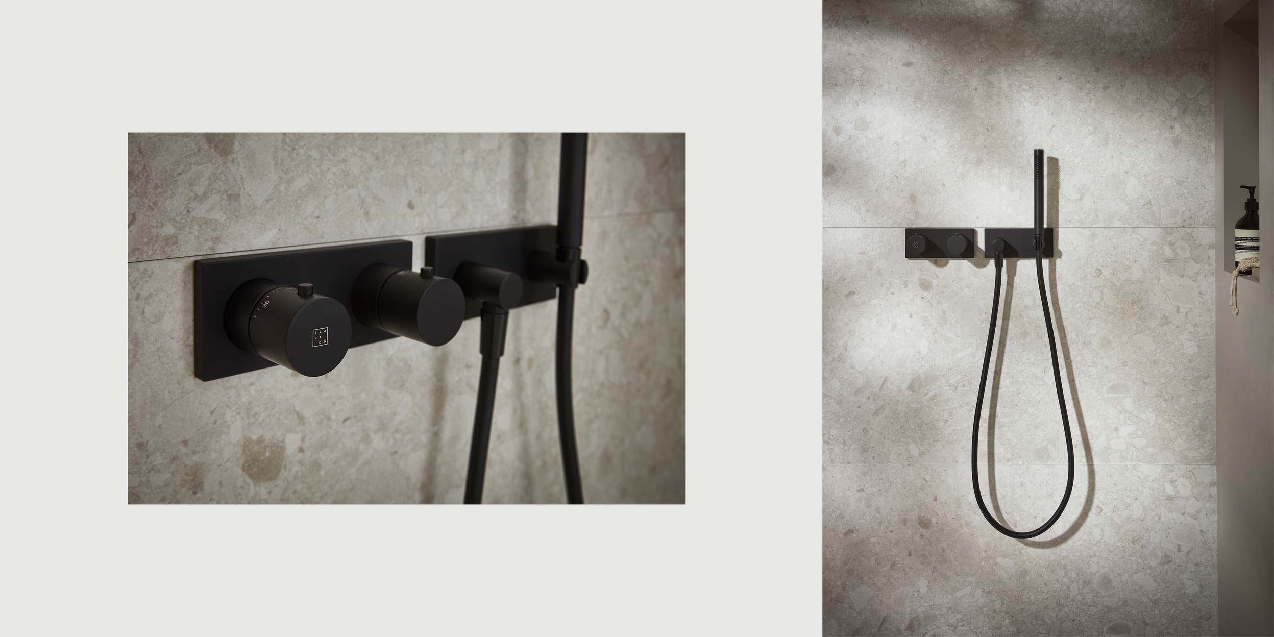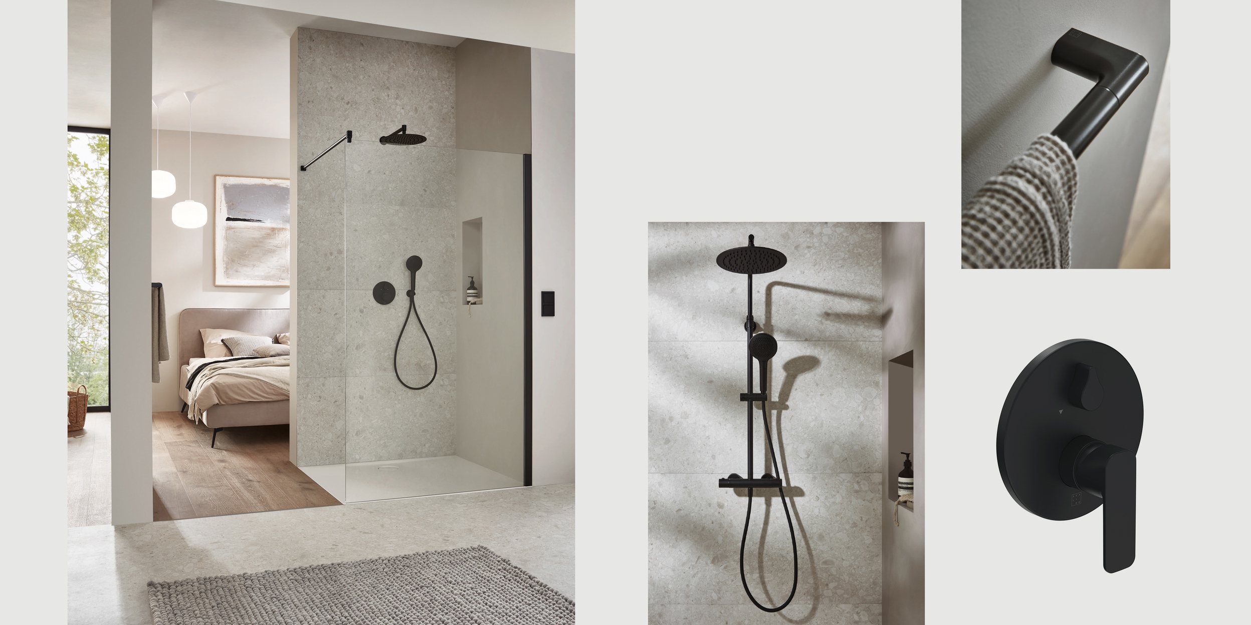 Im Duschbereich entfaltet sich ein tiefschwarzes Paradies für Designliebhaberinnen und -liebhaber. Schwarze Handbrausen und Regenduschen verwandeln den Raum in ein luxuriöses Ambiente, während kleine Akzente wie schwarze Griffe und Scharniere das Gesamtbild abrunden und eine stimmige Atmosphäre schaffen. Mit schwarzen Duschflächen komplettiert SCALIDO das modulare Sortiment, um dein Badezimmer zu einem stilvollen Ort der Hygiene zu realisieren.