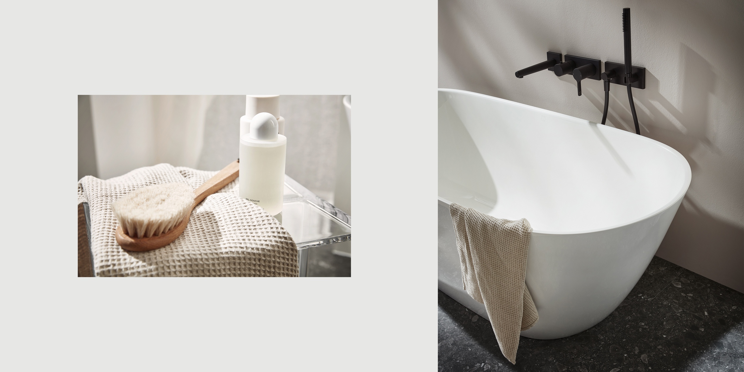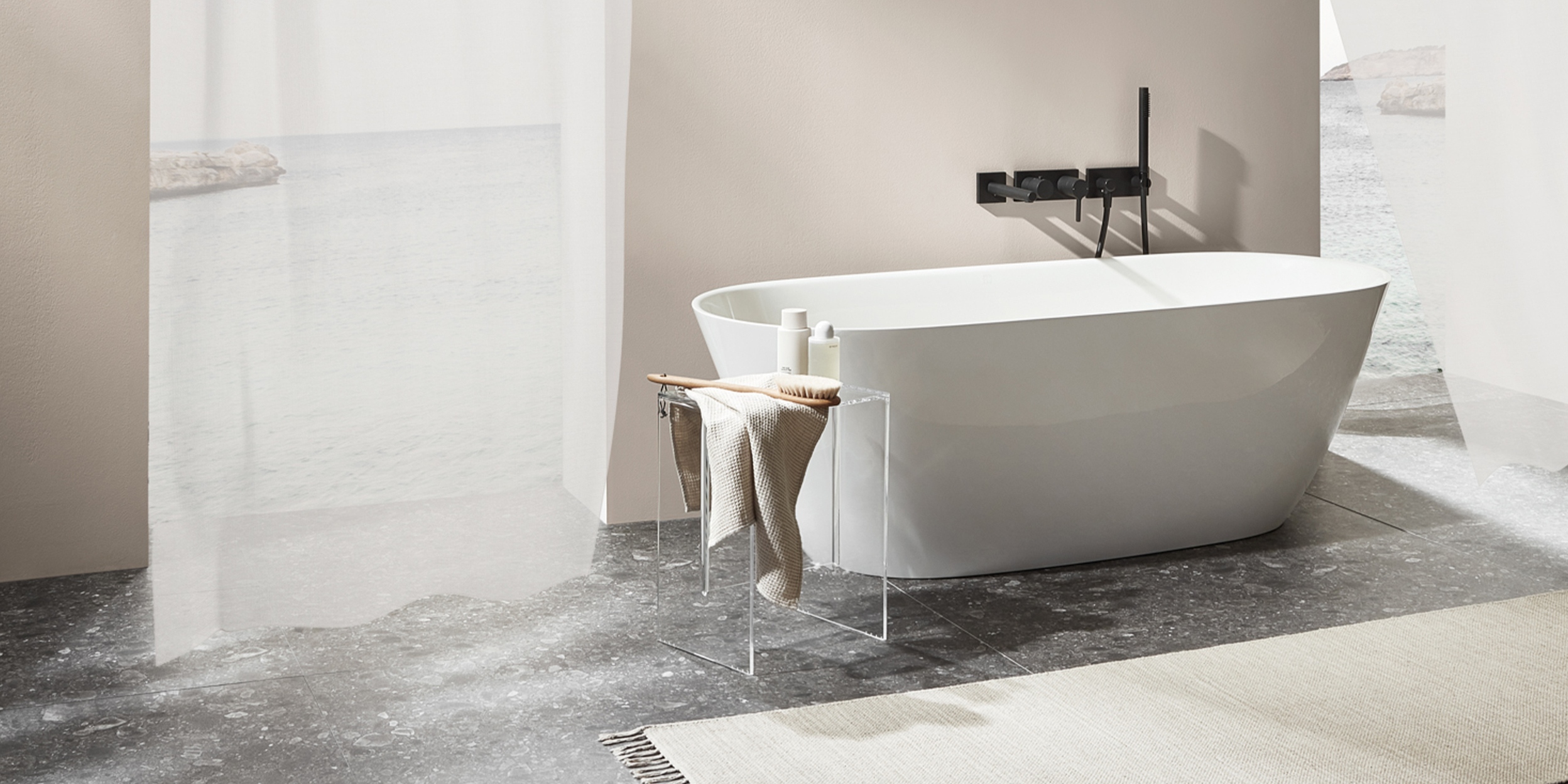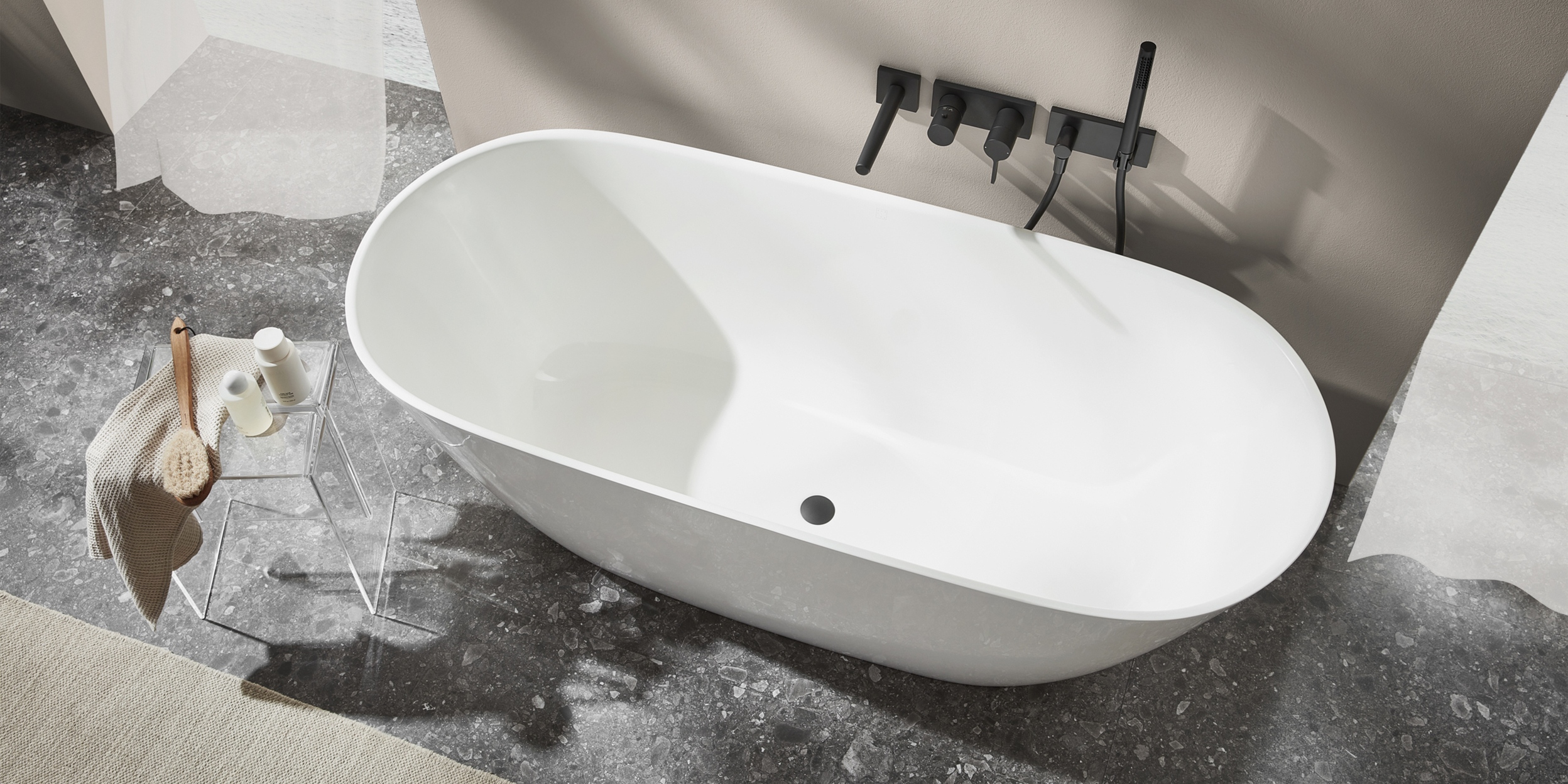 Die Wahl von schwarzen Accessoires im Wannenbereich verstärkt den harmonischen Gegensatz zu den schlichten weißen Wannen und eröffnet eine Fülle von gestalterischen Möglichkeiten. Durch die geschickte Kombination von schwarz und weiß in verschiedenen Formen und Ausführungen entstehen stimmungsvolle Designs. Wie wäre es mit einer ovalen weißen Wanne, ergänzt durch eckige schwarze Badetuchhalterungen?