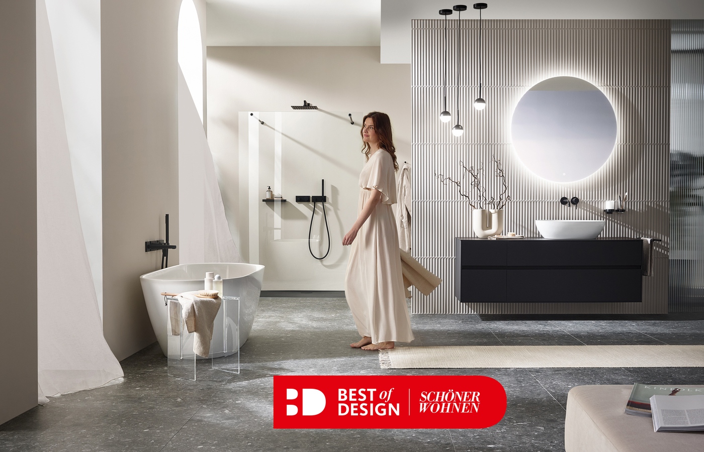 Die D3 Waschtischarmatur L freut sich über die Auszeichnung mit dem Red Dot Award für ihr vielseitiges und ansprechendes Design. Mit der Auswahl zwischen den eleganten Oberflächen in schwarz und Chrom erweitert SCALIDO die kreative Bandbreite für deine individuelle Badgestaltung noch weiter. Die außergewöhnliche Größe, die geschmeidige Form und der schwenkbare Auslauf verleihen dieser Waschtischarmatur im mattschwarzen Design einen unwiderstehlichen und zeitlosen Charme.