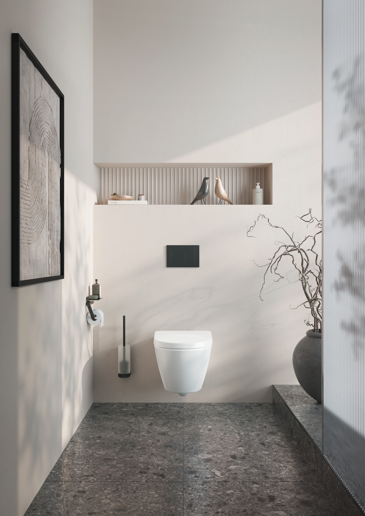 Es gibt viele Möglichkeiten, auch den WC Bereich mit schwarzen Details zu veredeln. Accessoires wie schwarze Papierhalter ergänzen die dunklen Armaturen aus Waschtisch-, Dusch- und Wannenbereich harmonisch. Die Kombination eines strahlend weißen WCs mit dezenten schwarzen Akzenten verleiht dem Raum eine zeitlose Eleganz. Hier findest du eine Übersicht mit weiteren Accessoires von SCALIDO für den WC-Bereich.